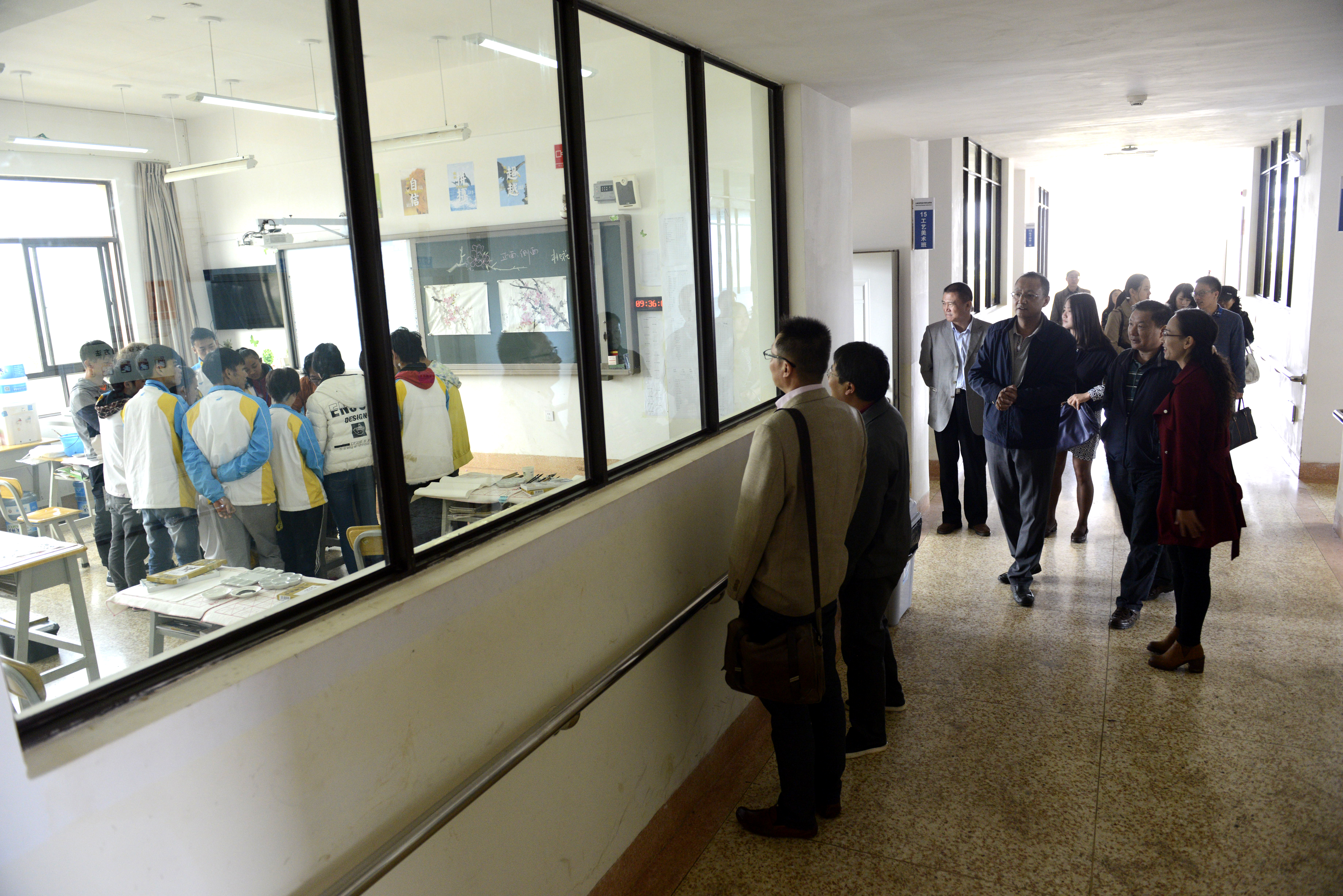 图为高校设置评议委员会委员实地调研学校教学情况