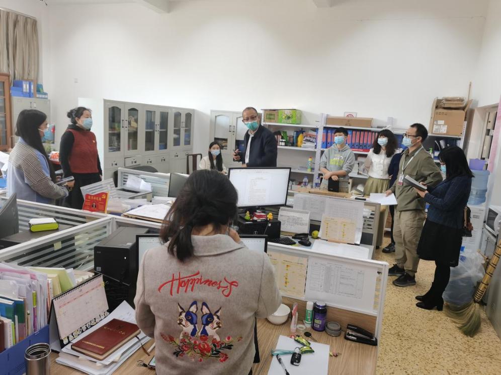 随后,检查组先后走访校医室和防疫物资储备仓库,深入了解近期发热人员处置情况和防疫物资储备情况。要求校医室要随时做好发热人员处置工作,发挥前哨作用,要求防疫物资管理要做到细致规范,物资分配要合规合理。