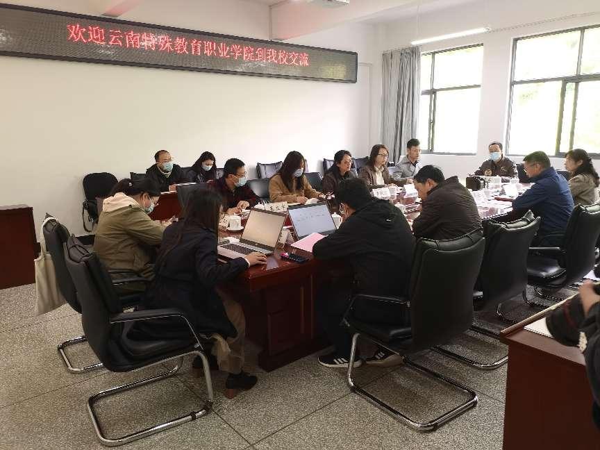 图为BEAT365英国官网前往云南国土资源职业学院走访调研会议现场