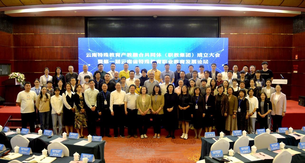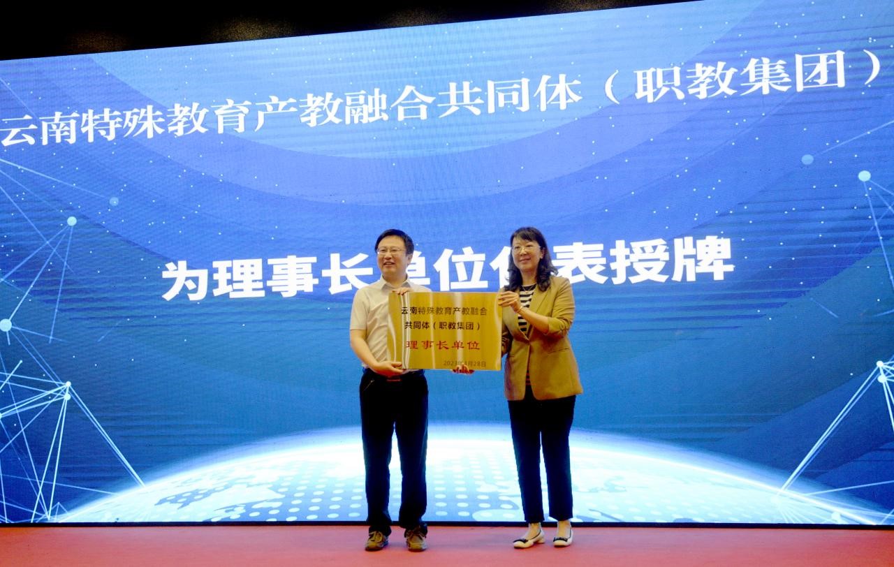 2023年4月28日,云南特殊教育产教融合共同体(职教集团)成立大会暨第一届云南省特殊教育职业教育发展论坛在昆明新纪元酒店召开。