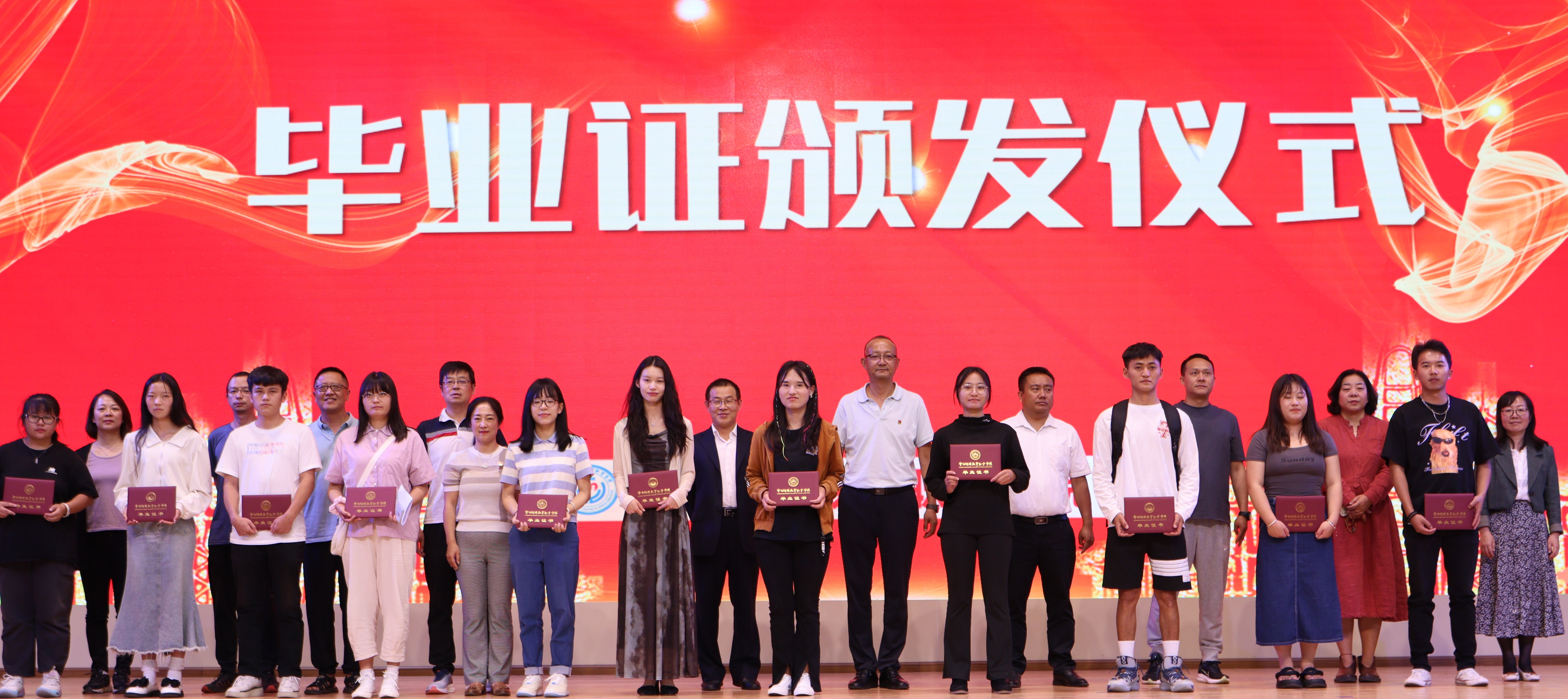 党委副书记石安银宣读《中共BEAT365英国官网委员会关于表彰2023届优秀毕业生的决定》,副院长李永芳宣读《2023届毕业生毕业资格审核及毕业证颁发决定》,校领导和中层干部为获奖学生及毕业生颁发毕业证书及奖状。