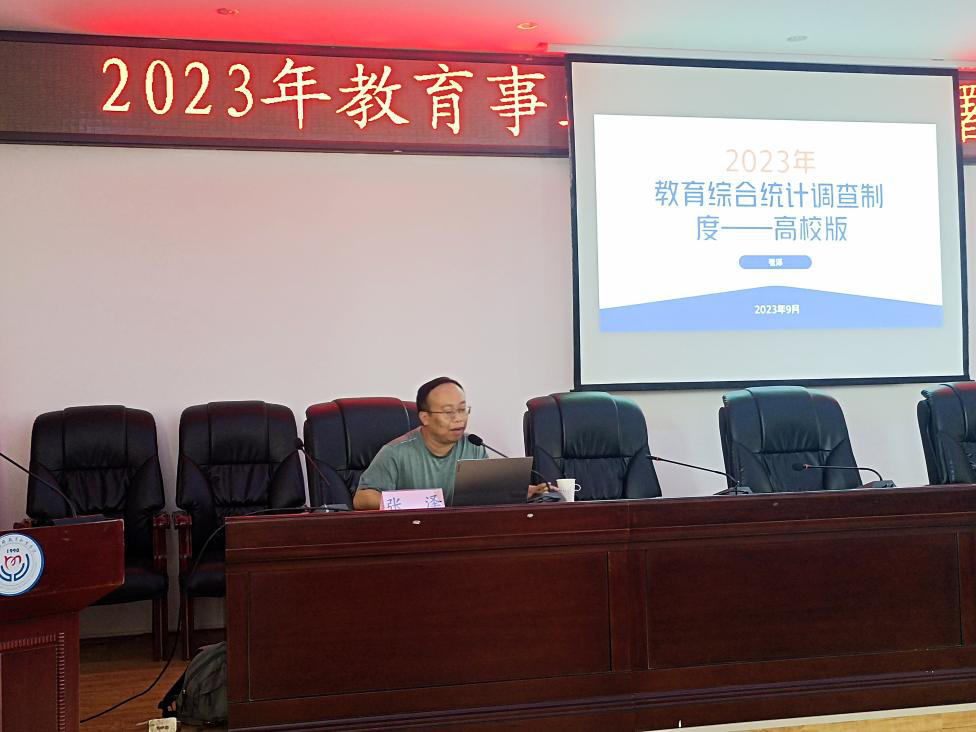 2023年9月21日,学校在大会议室召开了2023年教育事业统计工作部署暨培训会,此次培训邀请省教育厅教育事业统计专家张泽为BEAT365相关人员作培训,石红副校长、各部门负责人及数据员参加会议。