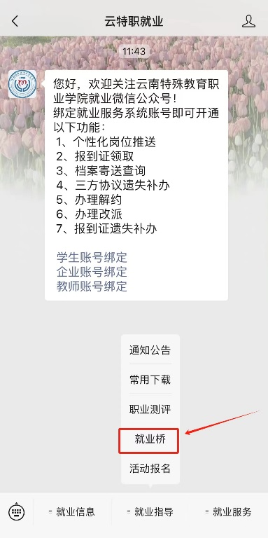 为了更好地服务BEAT365毕业生,方便学生及时了解、查询就业相关资讯、政策及职位信息,云南特殊教育职业学院专属就业桥上线啦!