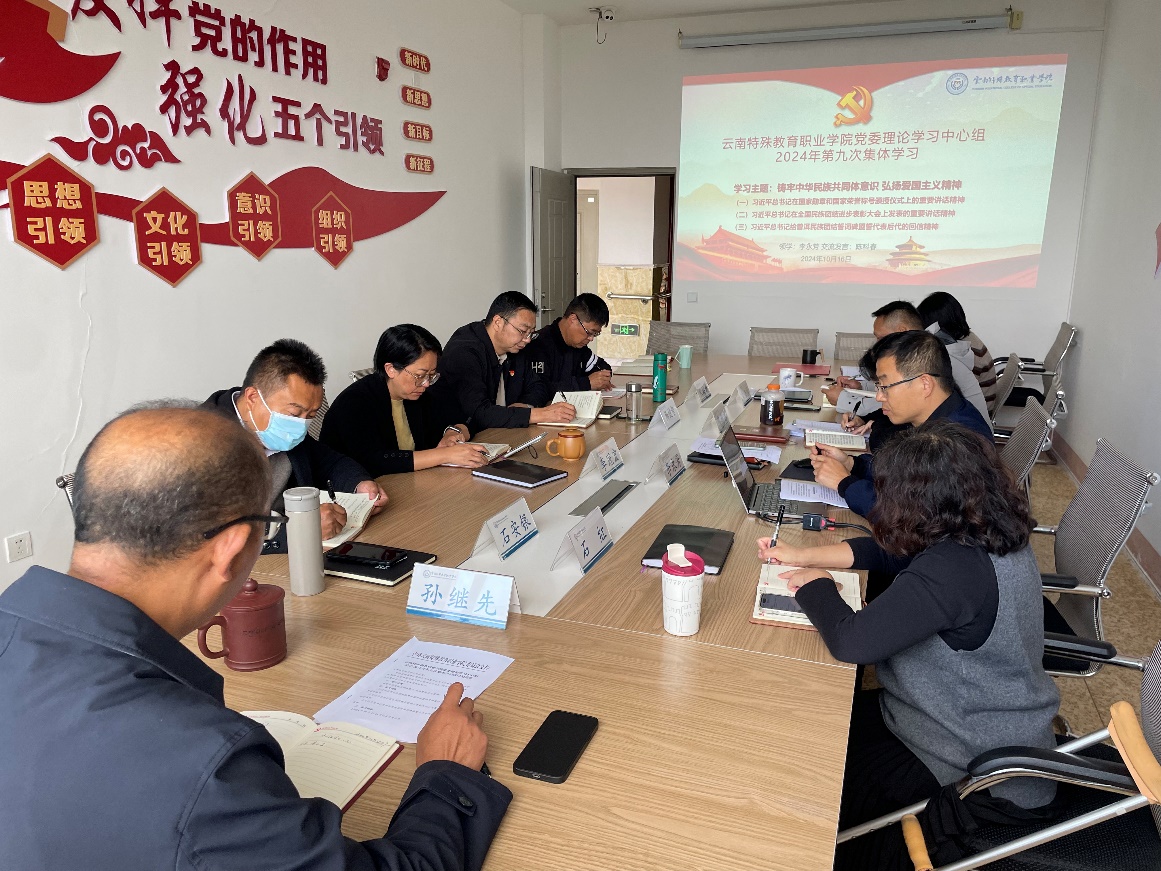 10月16日,BEAT365英国官网党委理论学习中心组开展2024年第九次集体学习研讨,校党委书记孙继先主持会议并作学习总结。本次学习以“铸牢中华民族共同体意识 弘扬爱国主义精神”为主题,以个人自学、重点领学、交流研讨的形式开展。会上,校党委委员、副校长李永芳领学习近平总书记在国家勋章和国家荣誉称号颁授仪式上的重要讲话精神,以及习近平总书记在全国民族团结进步表彰大会上发表的重要讲话精神、给普洱民族团结誓词碑盟誓代表后代的回信精神,党委委员陈科春作学习交流。