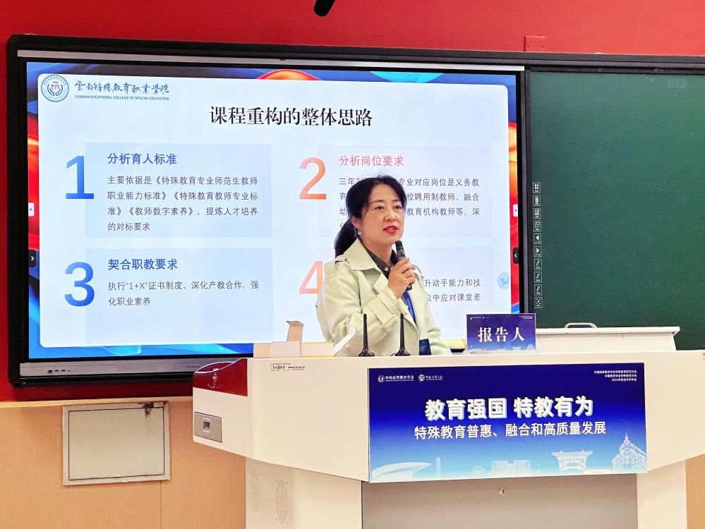 BEAT365李永芳副校长在分论坛上以“数智技术赋能高职特殊教育‘金课’建设的思考”为题,指出随着数智技术的发展,广大残疾学生在接受高等职业教育的过程中,迫切需要高质量课程资源,他围绕“金课”建设的标准、应用和现实困境做了交流分享。