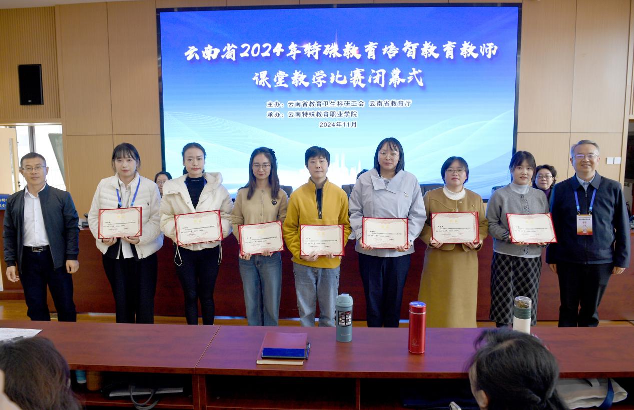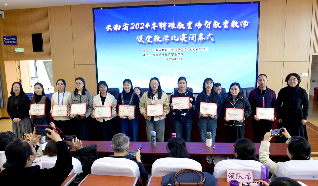 本次大赛共有来自云南省各州市特殊教育领域的17支代表队的35名教师参赛,经过第一阶段的选拔赛后脱颖而出进入第二阶段说课比赛环节,最终取两场比赛的平均分一决高下。赛场上,老师们尽显风采,展现出了非凡的专业素养和对培智教育事业的满腔热忱。比赛至20日上午结束,评选出一等奖4名,二等奖7名,三等奖10名。