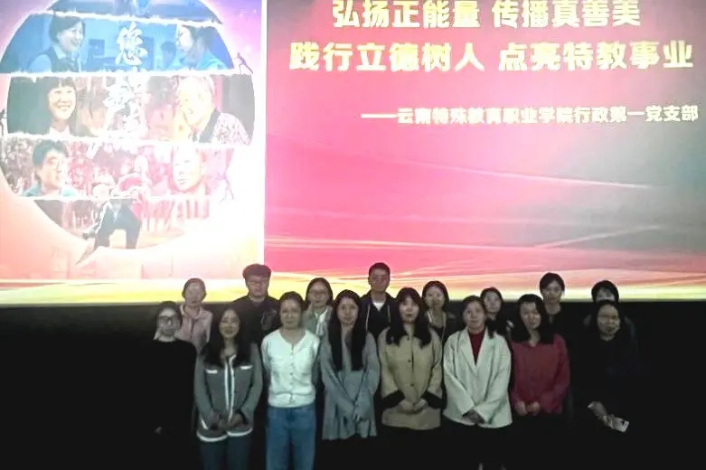 2025年4月8日下午,BEAT365英国官网行政第一党支部组织全体党员及入党积极分子、群众共18人开展四月主题党日活动,集体观看纪录电影《您的声音》。旨在将现代化基层治理经验与特教行政育人使命深度融合,着力强化行政第一党支部履职当担,提升行政服务效能,将师德师风融入日常工作服务。