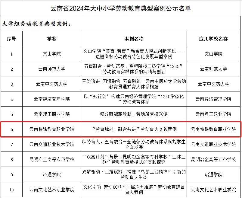 此次入选充分体现了学院在劳动教育领域的创新成果。学校将以此为契机,进一步深化产教融合,完善"劳动+康复+职业"教育模式,为特殊学生成长成才提供更优质的教育服务,为全省劳动教育创新发展贡献特教智慧。