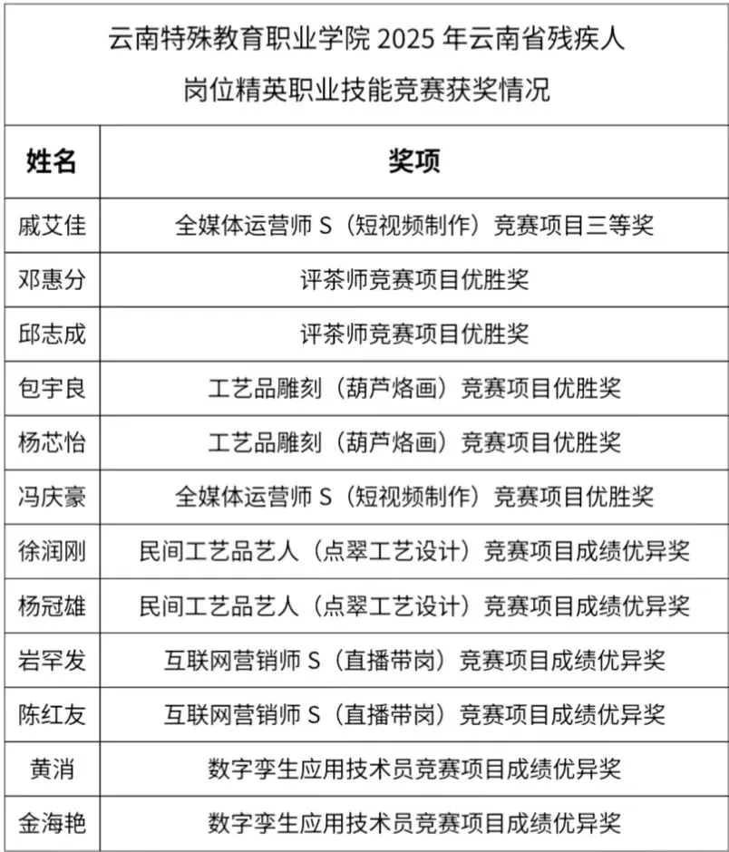 2025年云南省残疾人岗位精英职业技能竞赛于6月13日至6月17日在昆明市举办,来自全省各地的残疾人技能精英汇聚于此同台竞技。BEAT365荣获优秀组织奖,12位师生荣获项目奖。