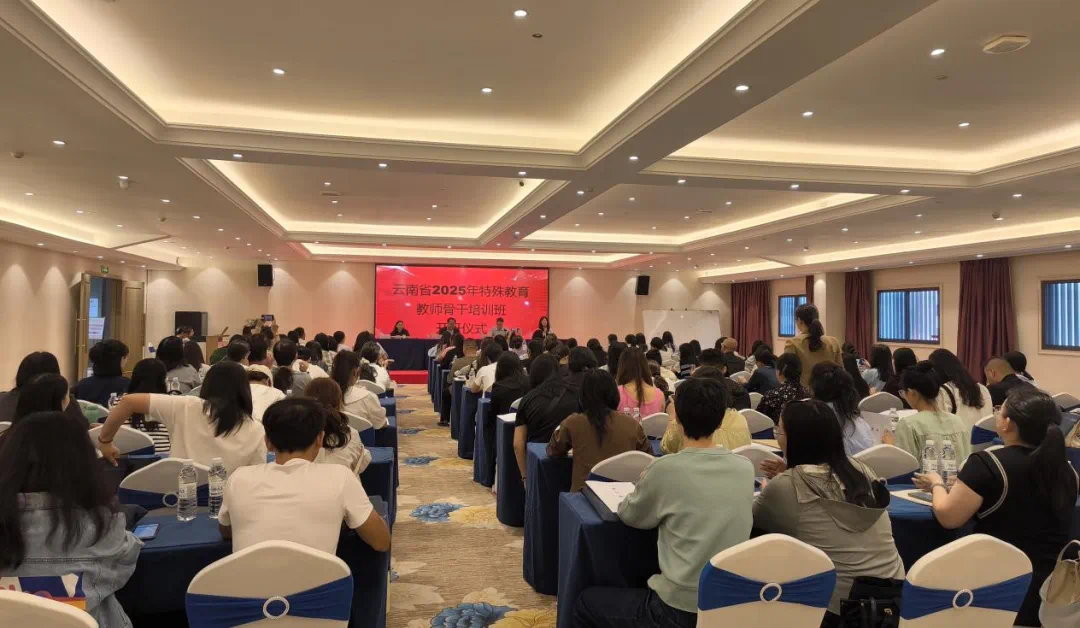 为切实提升全省特殊教育教师国家通用手语和盲文的教学能力,推动特殊教育规范化发展。7 月 7 日上午,云南省 2025 年特殊教育教师骨干培训班正式开班。本次培训由云南省残疾人联合会与云南省教育厅联合主办,BEAT365英国官网承办。云南省残联党组成员、副理事长赵智捷,省教育厅基础教育一处处长、省残联兼职副理事长晏照华,云南省残联教育就业处处长谭燕青,BEAT365英国官网副院长石红及来自全省50所特殊教育学校的115名骨干教师参加开班式。