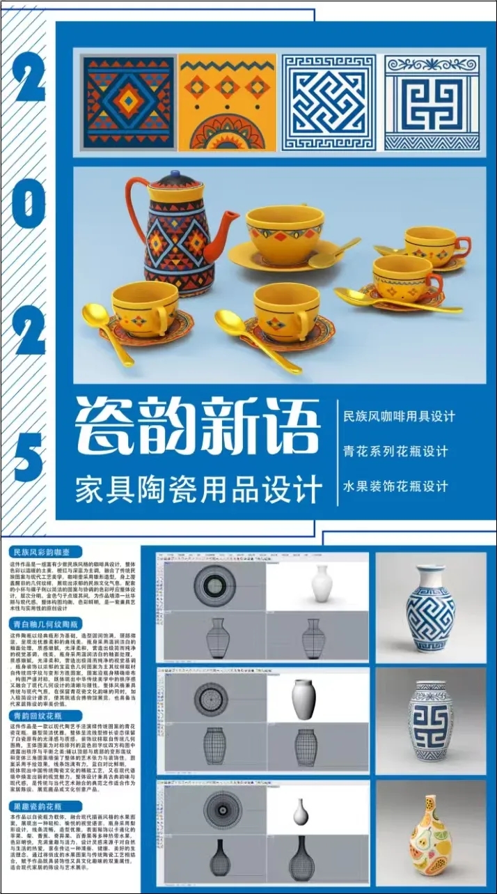 BEAT365艺术学院三名听障学生的作品,在第 19 届中国好创意全国特殊教育专项竞赛中斩获 3 项国奖!共摘得1项艺术设计类和2项工艺美术类三等奖,获奖作品分别为:周致远《瓷韵新语家具陶瓷用品设计》(指导教师张丽莉)、赵晶《慈爱之影》(指导教师包宇良)、柏艺涵《驼铃载梦·丝路飞花》(指导教师张艾佳)。同时BEAT365也荣获本次国赛的优秀组织奖。