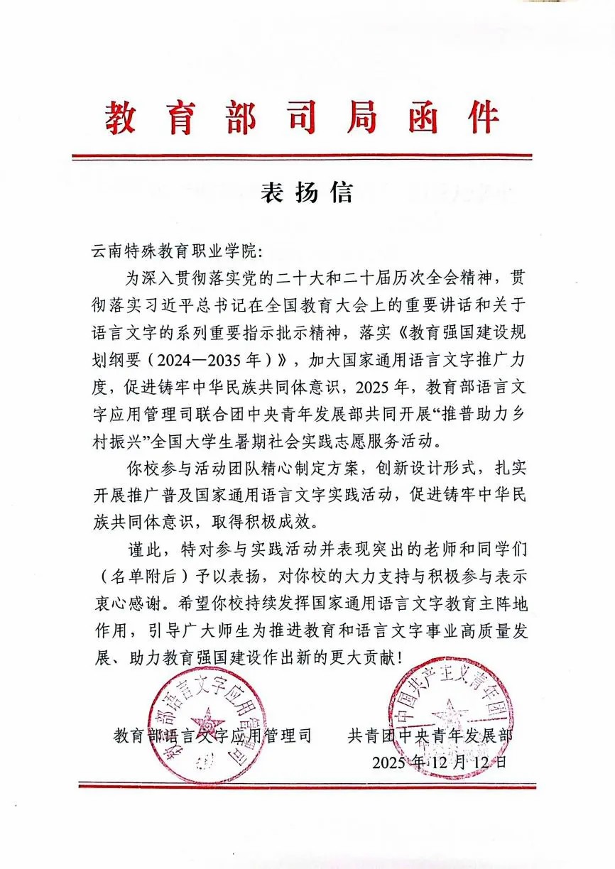 此次活动不仅为当地留下了语言与艺术的种子,也形成了可复制、可推广的“残健融合推普助力乡村振兴”服务模式,为特殊教育群体参与国家战略提供了生动范例,展现出新时代青年与特殊群体共同奋进、服务社会的责任担当。