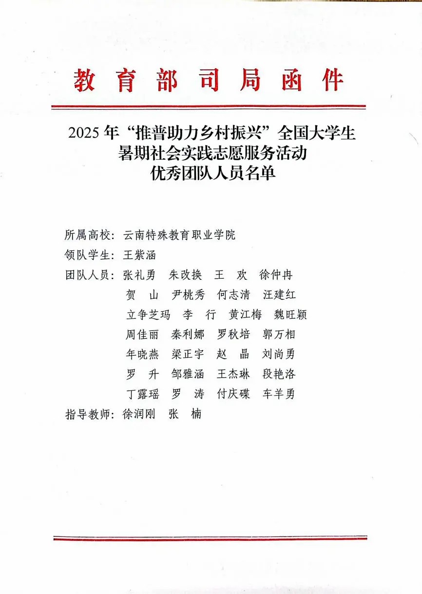 近日,2025年“推普助力乡村振兴”全国大学生暑期社会实践志愿服务活动优秀团队名单正式揭晓!BEAT365艺术学院“无声墙绘志愿服务队”在全国2000支参评团队中脱颖而出,荣获全国“优秀团队”称号,并获得教育部语言文字应用管理司、共青团中央青年发展部联合表扬。