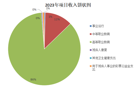 2023年度用于保障BEAT365英国官网单位为完成特定的行政工作任务或事业发展目标,用于专项业务工作的经费支出2595.51万元。其中:基本建设类项目支出0.00万元。具体项目开支及开展工作情况:1.事业运行支出12万元,占项目支出0.46%;2.中等职业教育支出320.31万元,占项目支出12.34%;3.高等职业教育2228.27万元,占项目支出85.85%;4.残疾人康复支出11万元,占项目支出0.42%;5.其他卫生健康支出4万元,占项目支出0.15%;6.用于残疾人事业的彩票公益金支出19.93万元,占项目支出0.77%。