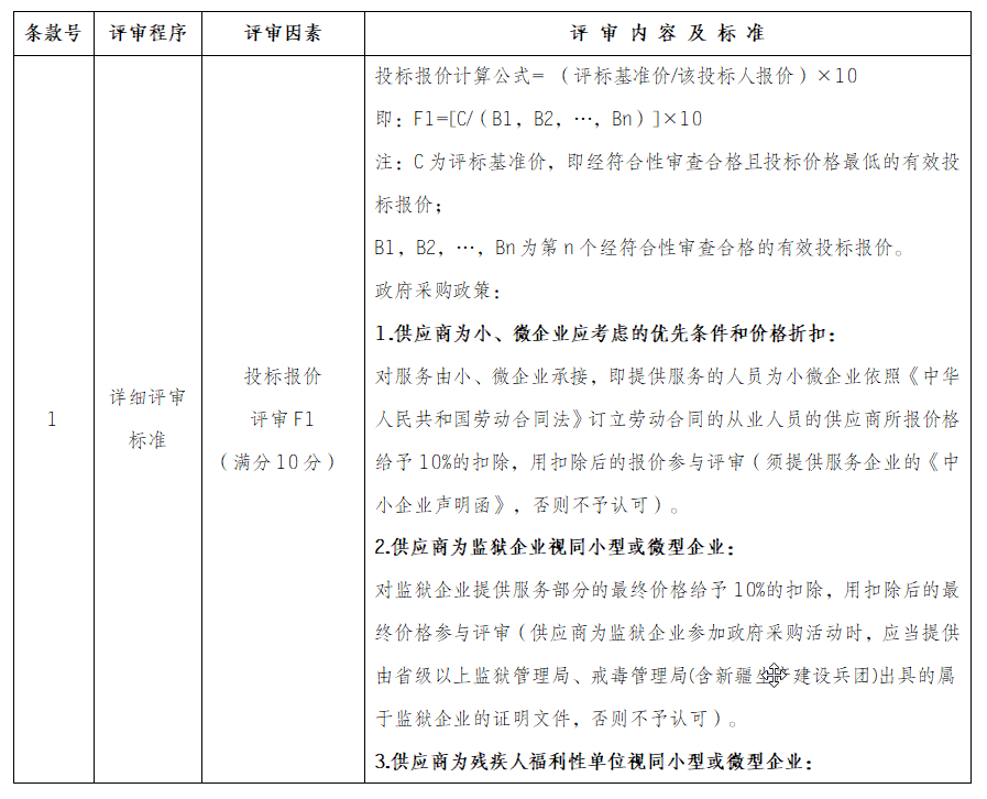 公式:投标人评标总得分=F1+F2+F3
