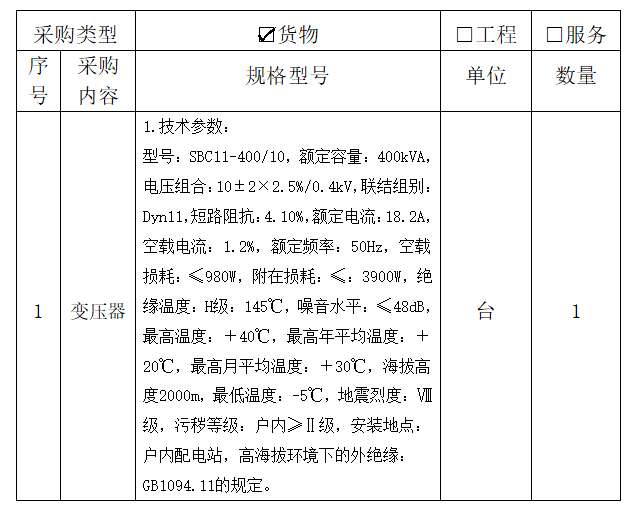 1、项目名称:BEAT365英国官网中心配电室变压器采购安装项目