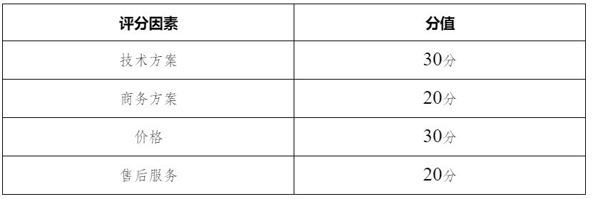 在符合各项要求的情况下,按照综合评分法选择供应商。评分标准如下: