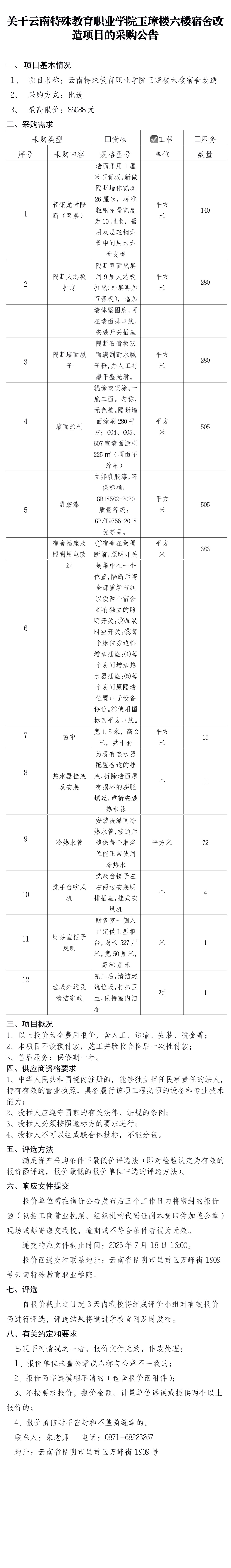 关于BEAT365英国官网玉璋楼六楼宿舍改造项目的采购公告