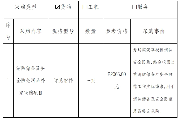 落实管理要求,防范安全风险:响应国家消防安全管理相关法规及学校安全工作部署,通过补充采购实现消防储备物资 “动态更新、足额储备”,从源头降低火灾、应急事件引发的安全风险。