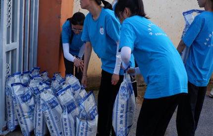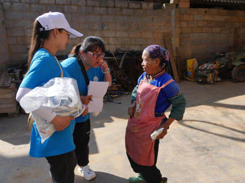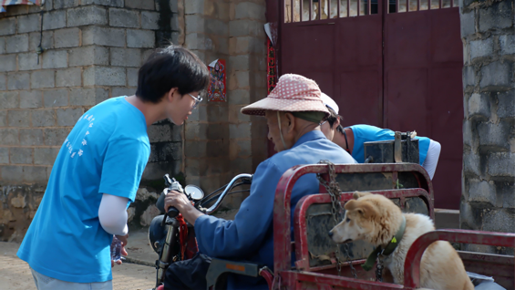 手语教学活动结束后,实践团队成员在村内联络员的带领下对普者黑村5家贫困户进行走访,并赠送大米与食用油。