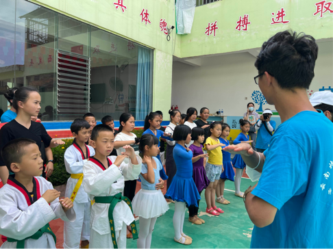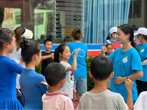 7月11日下午,团队成员前往智成舞道舞蹈培训学校,为不同年级的小朋友开展了中华人民共和国国歌手语教学活动,以别样的方式激发不同年龄层学生的爱国热情。手语教学活动以特殊教育专业的同学为教学主体,团队成员共分成两个组,带领40余名不同年级的小朋友学习手语。通过小组教学,了解学校基本情况、国家政策的落实状况等。手语教学成效显著,不少小朋友在很短的时间内就掌握了国歌的基本手语词汇,手语教学结束后,“小老师”们给小朋友们赠送了小礼物,整个教学过程气氛融洽且热烈。
