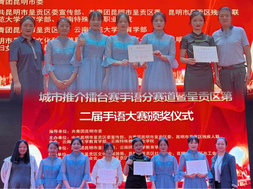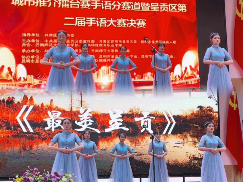 手语无声,却能展现属于呈贡独特的美,手语有爱,把特教学子心中的温暖传递。此次比赛,充分展示了特职院学子的风采,未来,希望特殊教育与公共服务系全体青年学生,不忘初心,戒骄戒躁,向着自己的理想奋勇前进,争取获得更好的成绩!
