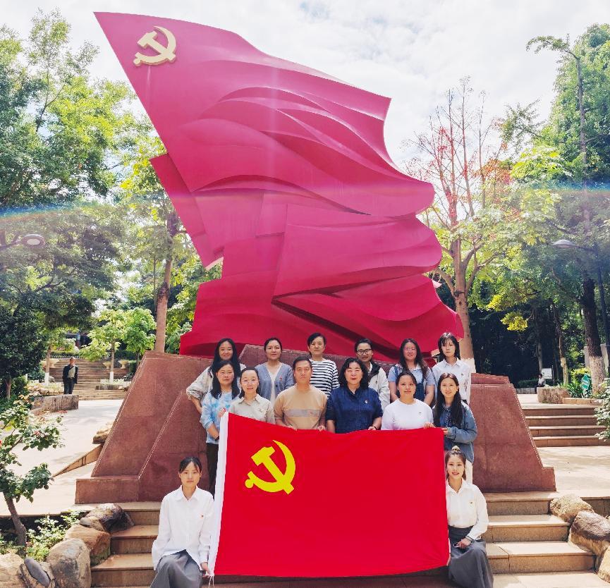 为庆祝中国共产党成立104周年,深入推进党史学习教育,传承红色基因,增强党员的责任感与使命感,2025年7月3日,教育与康养学院党支部组织全体党员前往呈贡三台山红色教育基地开展主题党日活动。此次活动由支部新接收的预备党员进行讲解,她们准备充分、讲解生动,为大家带来了一场别开生面的红色教育之旅。