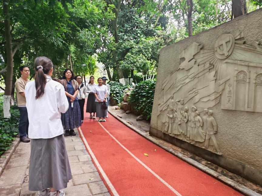 活动伊始,党员们来到党史浮雕群。沿着健身步道,7块大型浮雕依次排开,栩栩如生地展现了五四运动、长征、抗战等重大历史事件。预备党员们结合浮雕内容,详细讲述了每个历史事件的背景、经过和意义。党员们认真聆听,驻足观看,仿佛穿越时空,回到了那段波澜壮阔的岁月,深刻感受到了先辈们为国家和民族奋勇抗争的伟大精神。