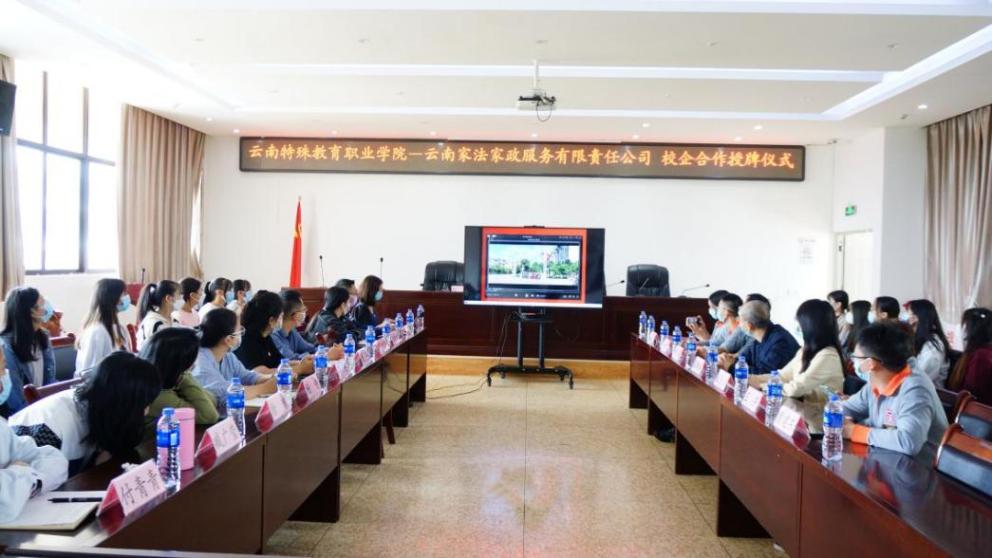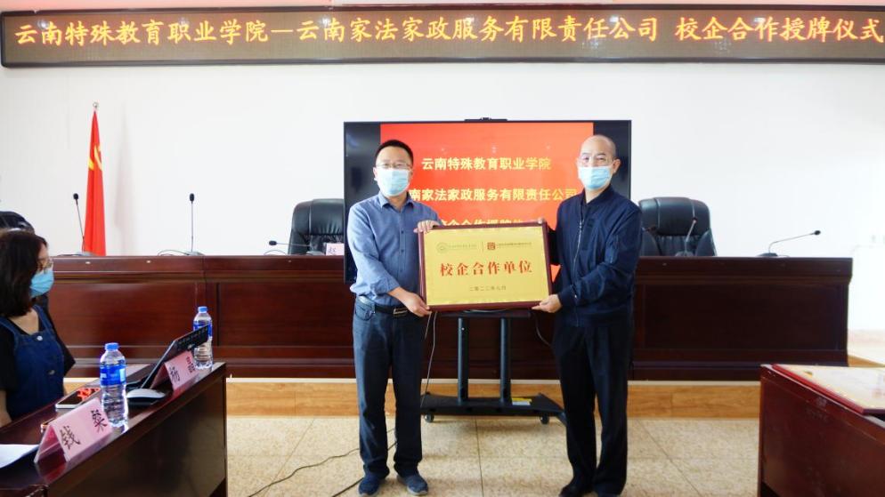最后,BEAT365英国官网与云南家法家政有限责任公司相互为对方授牌。会后校企双方相关人员进行了深度洽谈。
