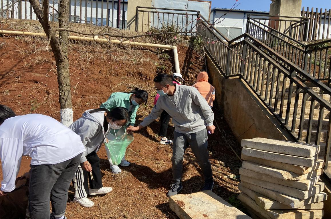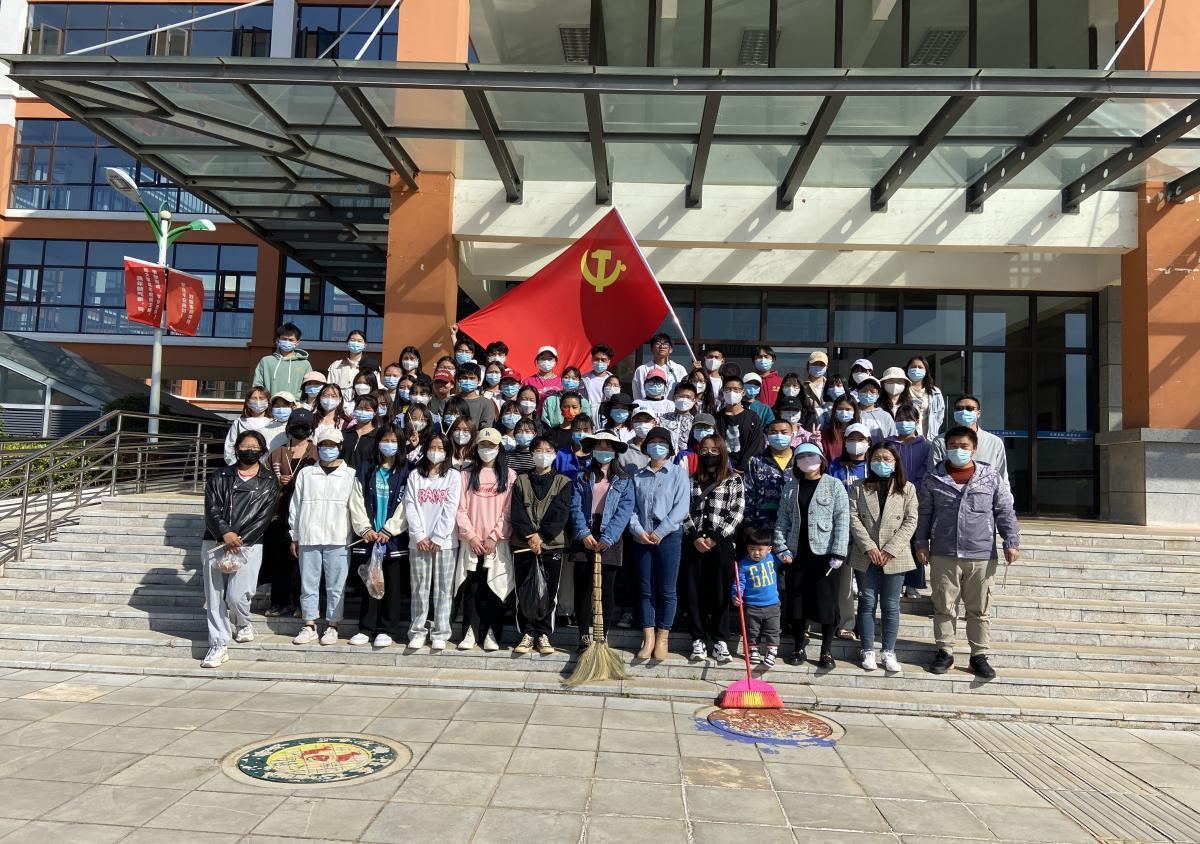 下午15时,在支部委员的带领下, 党员和同学们拿着各种清扫工具在升旗台下集合,沿着校园主路开始打扫卫生,有的同学用扫帚清扫沉积的落叶,有的用筷子捡起草丛间的垃圾,有的手提垃圾袋负责装垃圾,同学们相互协作,洋溢着欢乐的气氛。经过一小时的清扫,清洁区里的枯叶纸张等垃圾得到了清理,校园变得更加整洁干净。