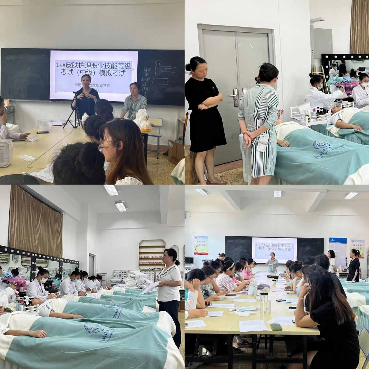 为深入贯彻落实《国家职业教育改革实施方案》,让证书助力学生的升学、实习与就业,积极推进人才培养“学历证书+若干职业技能等级证书”制度落实,积极推进“1+X;”证书试点建设工作,艺术系美容美体艺术专业于6月1日顺利组织完成中级“皮肤护理”职业技能等级考核,共两个年级30名学生3名考评员参与,本次考核属于美容美体艺术专业申报的三个“1+X”证书考核内容之一。