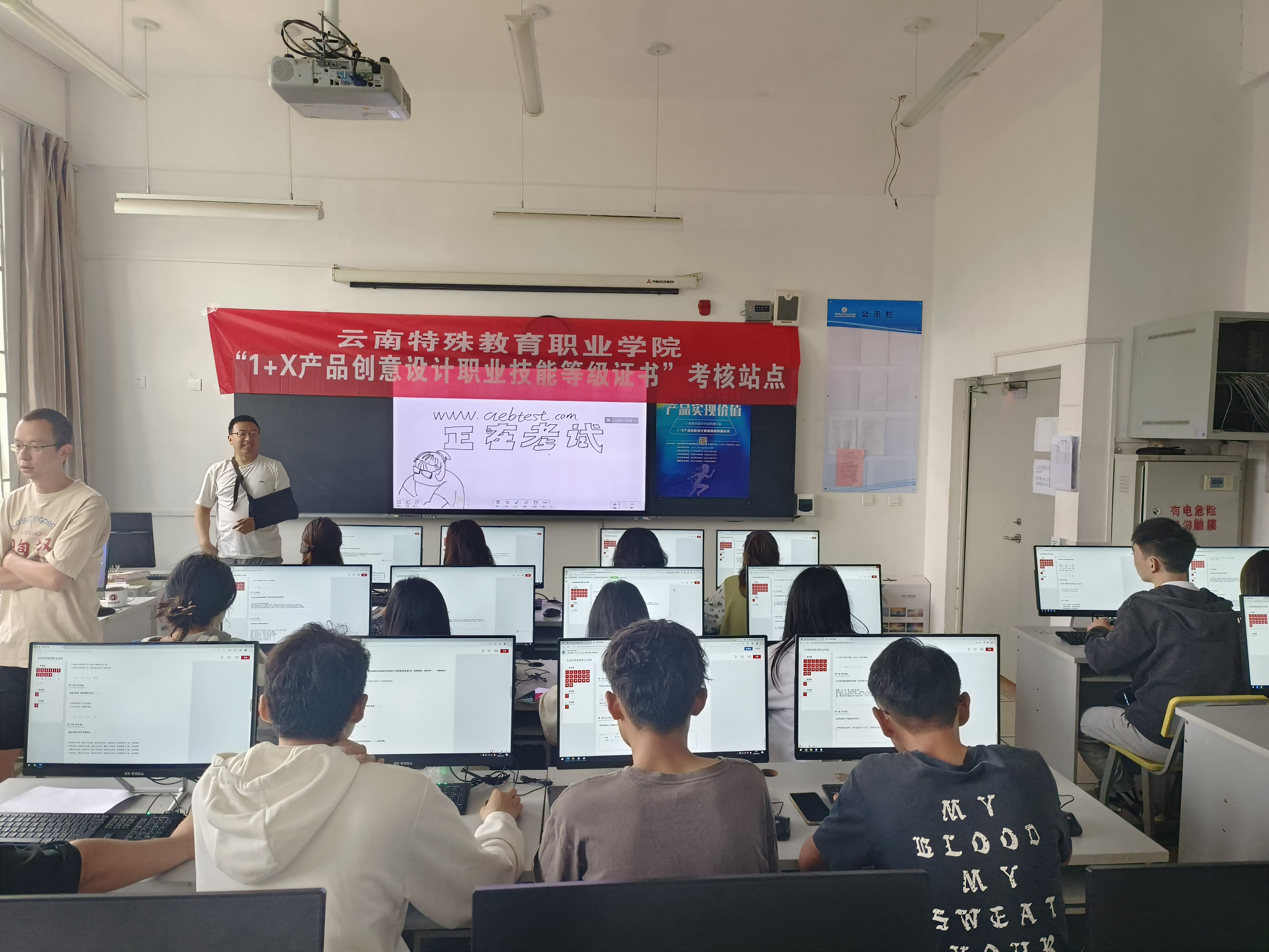 为贯彻《国务院关于印发国家职业教育改革实施方案的通知》,按照《教育部等四部门印发〈关于在院校实施“学历证书+若干职业技能等级证书”制度试点方案〉的通知》要求,在北京洛凯特文化传播有限公司评价组织的统一安排下,艺术系艺术设计教研室于6月19日顺利举办了“1+X产品创意设计职业技能等级(中级)证书”考试工作,艺术设计专业42名学生(其中15名听障学生、1名肢障学生)参加了本次认证考试。