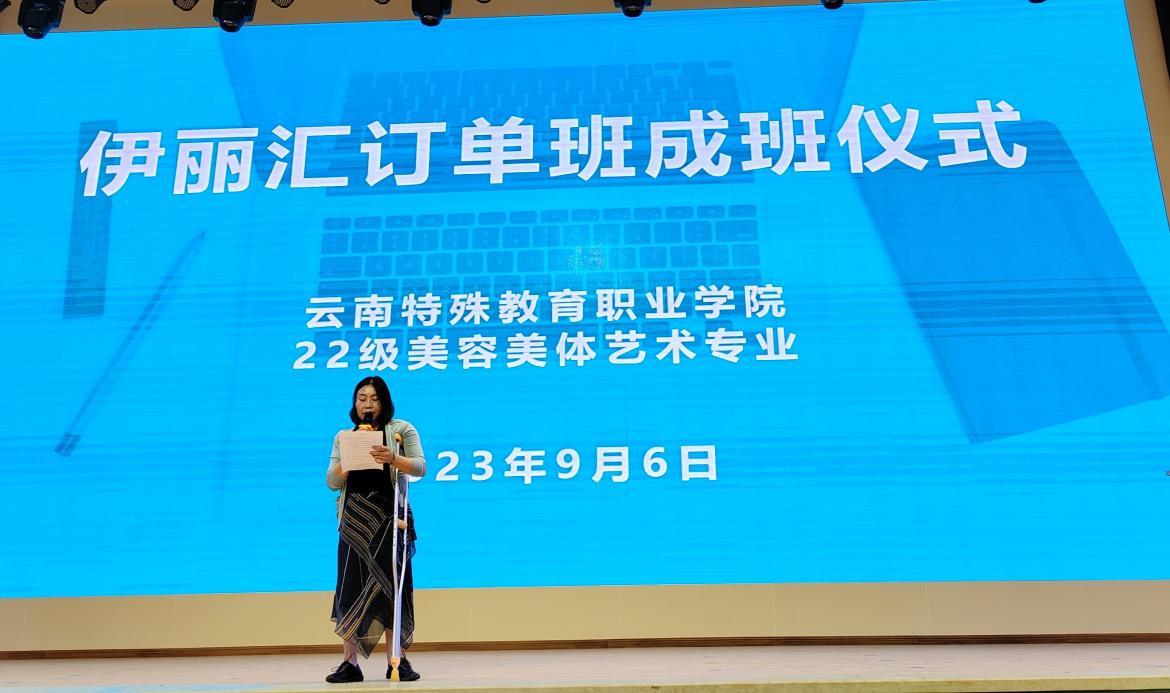 黄辉辉经理对本次到学院开展订单班成班仪式转达了公司对订单班同学的祝贺与欢迎。特职院美容美体艺术专业伊丽汇订单班是在国家教育部供需对接共同育人项目背景下开展的,积极响应国家号召推进校企合作的一项重要且具体的举措,校企双方本着坦诚、互信的原则,贯彻落实二十大的精神,把推动现代职业教育高质量发展摆在更加突出的位置,有序有效推进现代职业教育体系建设改革,将培养高素质技术技能人才、能工巧匠、大国工匠作为初衷,以培养人才、发展人才、成就人才为人力资源策略,为每一位订单班同学提供专业有效的职业发展规划和成长型的事业平台。黄辉辉经理表示,伊丽汇将珍惜并重视本次订单班的合作机会,坚持立德树人,德技并修,坚持产教融合,校企合作,坚持理论与实践结合,强化能力的目标,与学校共同努力,祝愿合作圆满成功,祝订单班的同学们学有所成!