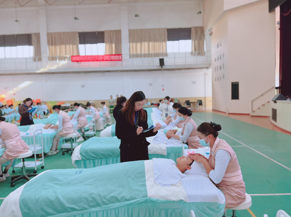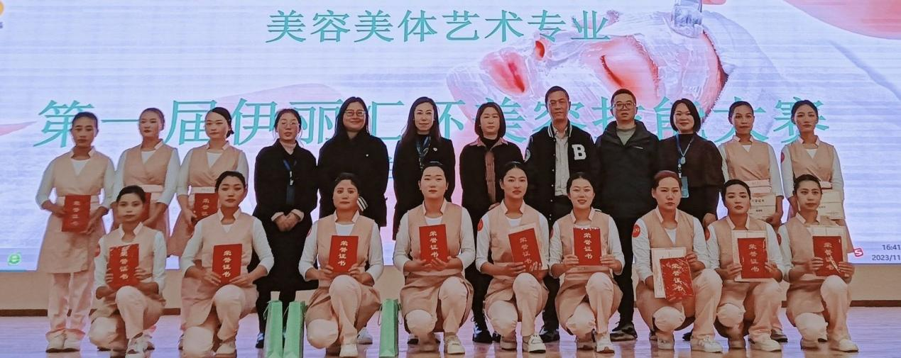 为展示校企合作育人成果,以赛促学、以赛促教。2023年11月23日下午艺术系美容美体艺术专业在广东伊丽汇美容科技有限公司的支持下在呈贡校区举办了第一届“伊丽汇杯”美容技能大赛。共5名教师、2名企业人员参与赛项筹备,260名学生参与了本次大赛观摩,14名“伊丽汇订单班”学生现场同台竞技。