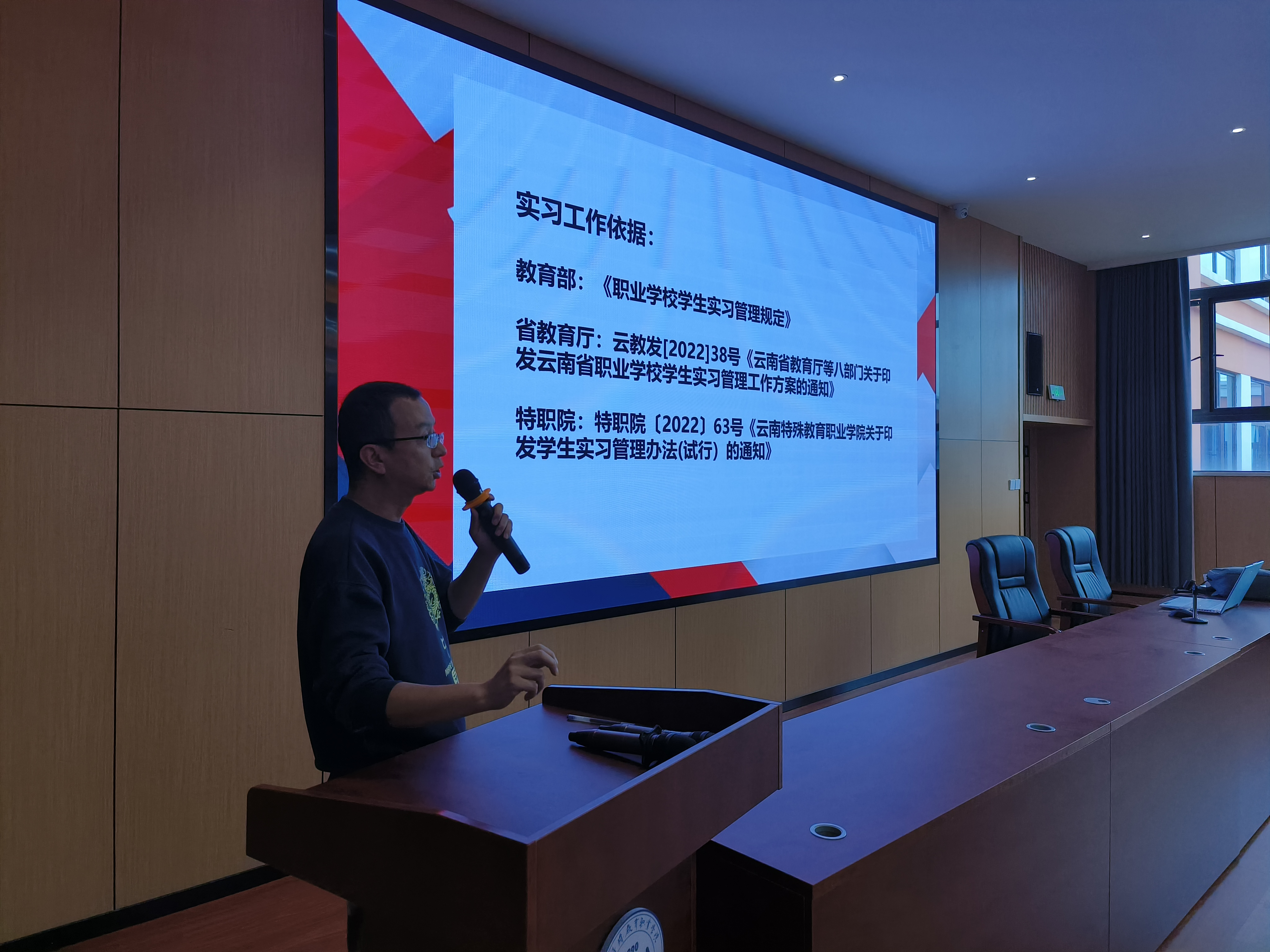 专业组教师谢毅传达了学校《职业学校学生实习管理规定(2021教育部版)》《云南省教育厅等八部门关于印发云南省职业学校学生实习管理工作方案》和《特职院〔2022〕63号BEAT365英国官网关于印发学生实习管理办法》等政策文件,并对实习备案材料撰写、实习纪律、实习管理和考核要求等内容进行讲解,让学生系统地了解岗位实习的全过程要求。