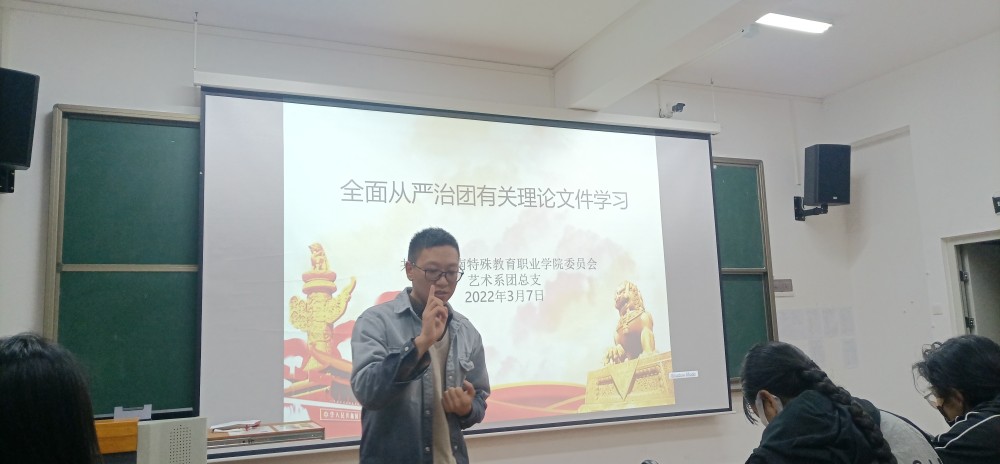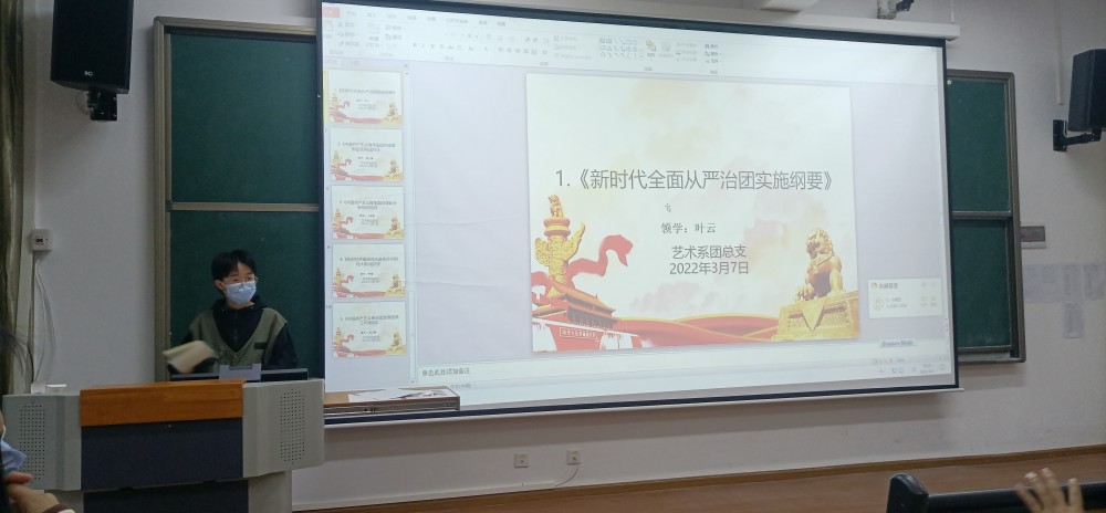 为认真落实共青团十八届六中全会精神,组织全体团员团干部学习团内规章制度,进一步严肃团的纪律,纯洁团的组织,教育引导广大团员坚决拥护党的领导,遵守国家法律法规,把坚持党的领导贯彻落实到全体团员的教育、管理、监督全过程。2022年3月7日,艺术系团总支在实训楼310组织开展团课学习活动,艺术系团干部及学生会成员50余人参与学习,本次团课学习活动采取团总支支委成员领学的形式开展。