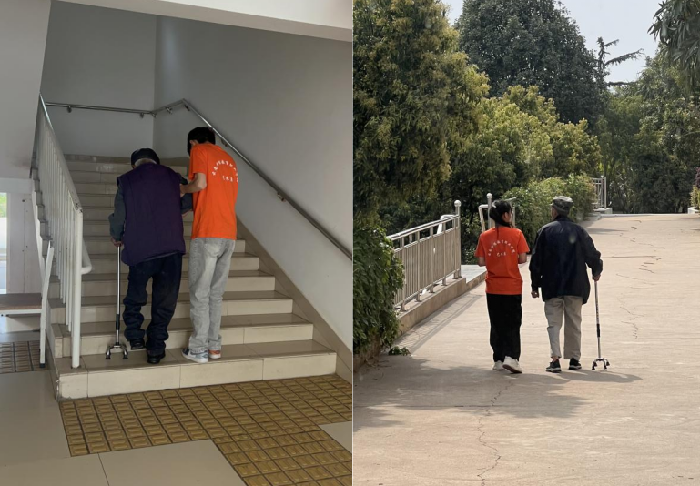 志愿者们陪伴老人们散步聊天